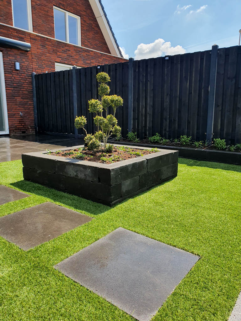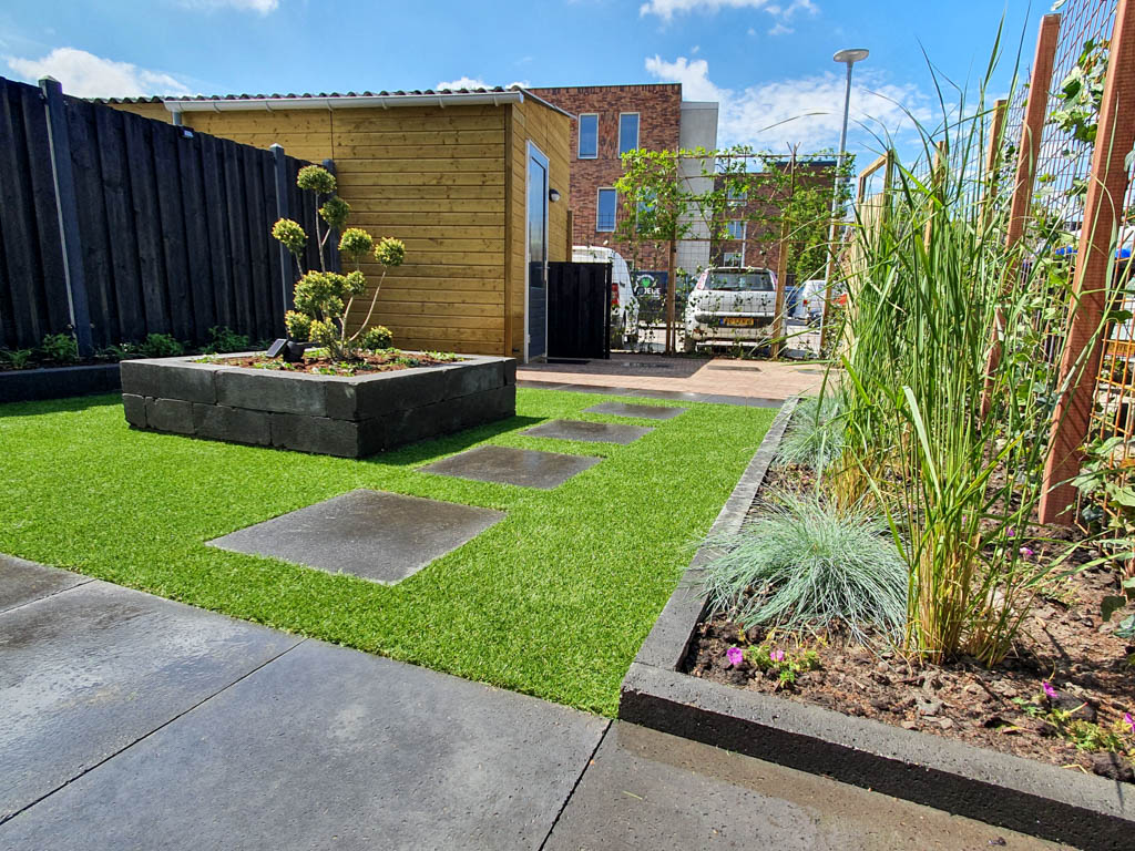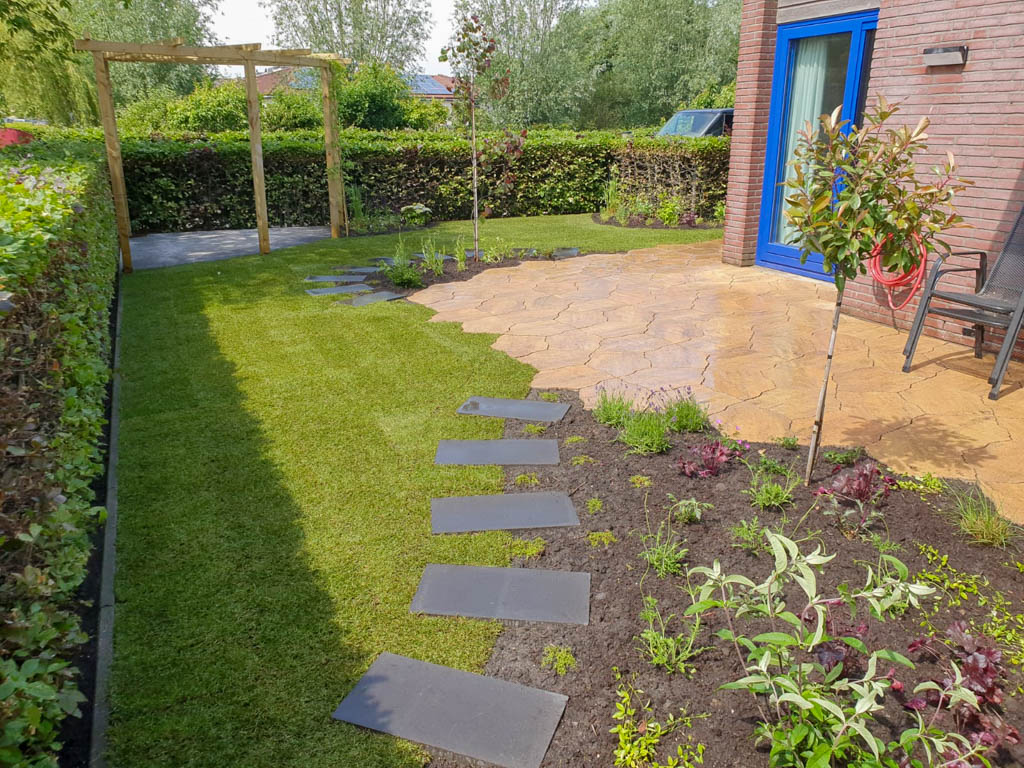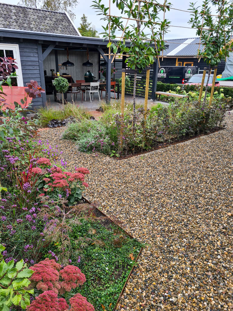Een tuin die efficiënt is ingericht en nagenoeg onderhoudsvrij is.