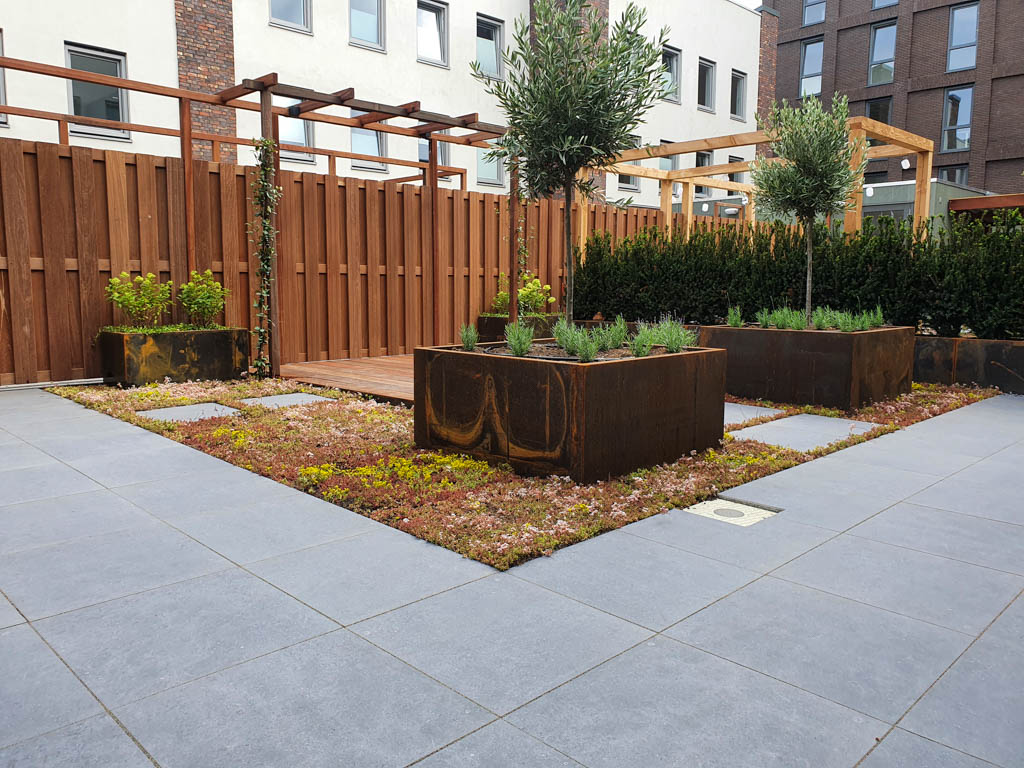 - het leggen van de bestrating en het maken van traptreden en/of muurtjes;