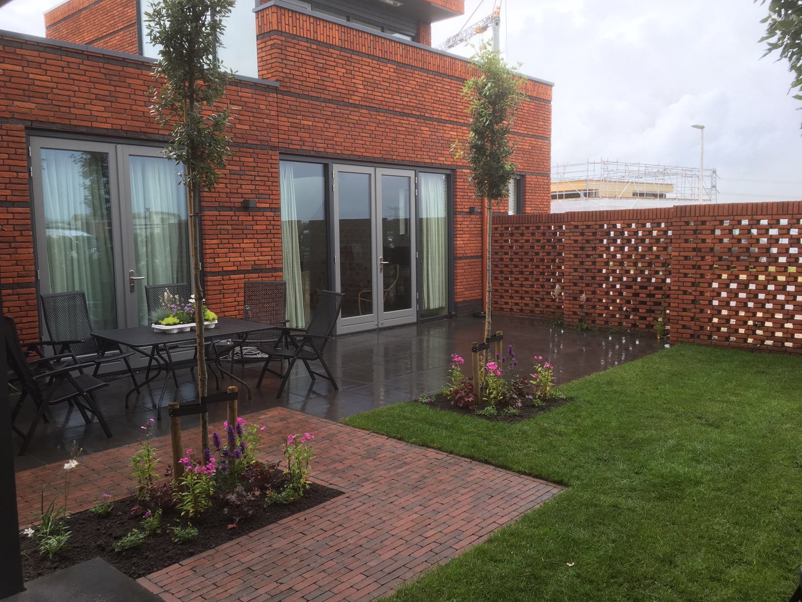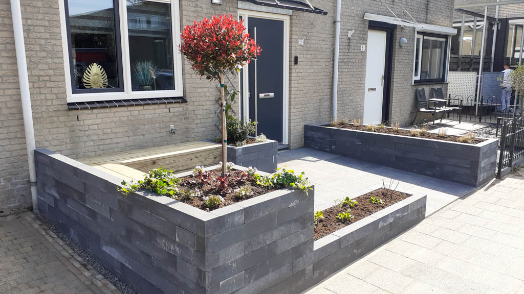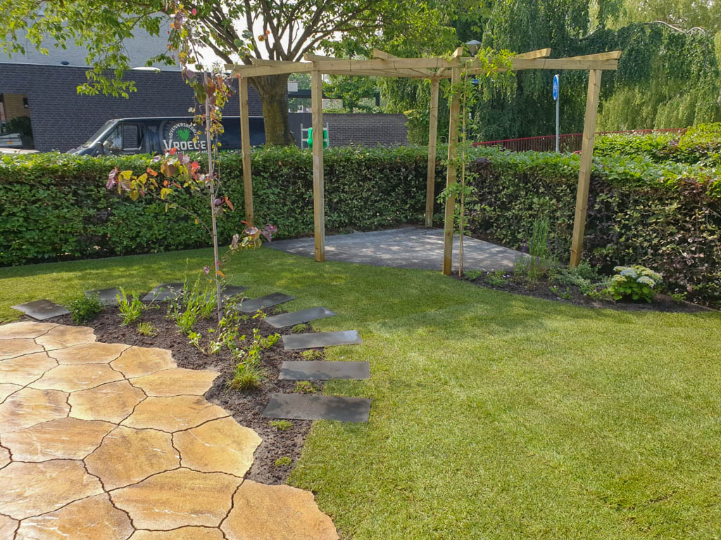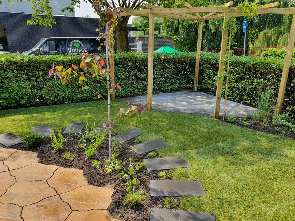 De tuinaanleg gebeurt conform het ontwerp. In grote lijnen komt dit op het volgende neer:
